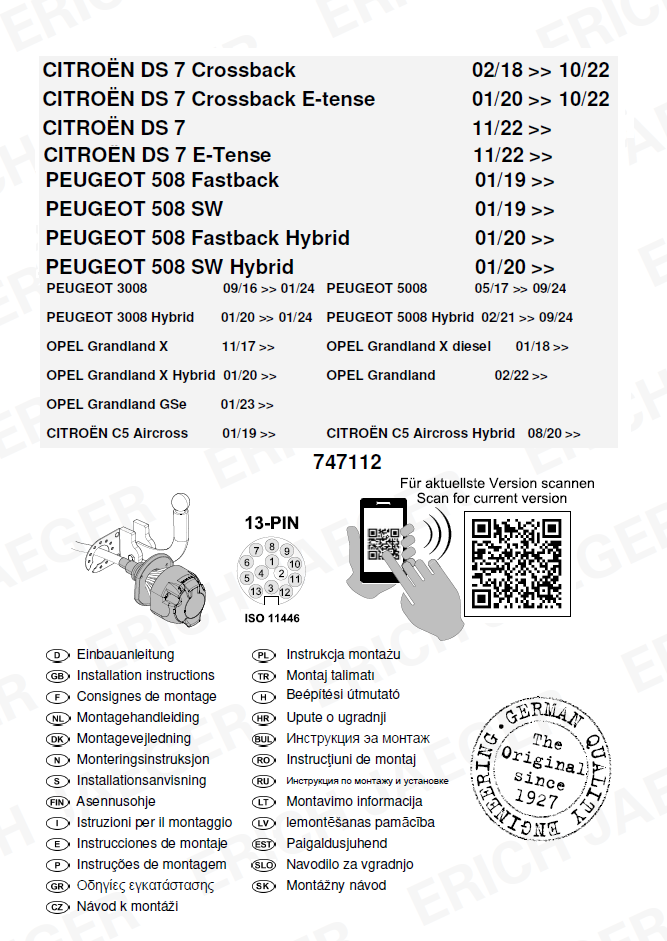 CITROËN DS 7 Crossback → 02/18 >> 10/22 CITROËN DS 7 Crossback E-tense → 01/20 >> 10/22 CITROËN DS 7 → 11/22 >> CITROËN DS 7 E-Tense → 11/22 >> PEUGEOT 508 Fastback → 01/19 >> PEUGEOT 508 SW → 01/19 >> PEUGEOT 508 Fastback Hybrid → 01/20 >> PEUGEOT 508 SW Hybrid → 01/20 >>